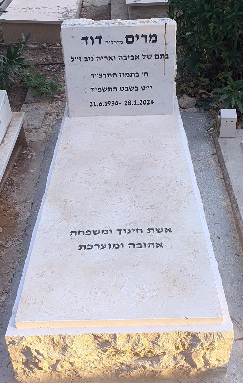 מירהל'ה נפרדה מאיתנו בשלהי חודש ינואר החורפי והגשום, בעת שהחיטה מתחילה להשתבל. ב-21 ליוני 2024 אמורה היתה מירהל'ה לחגוג 90 שנה, אבל היא החליטה להקדים את מנוחתה, ואנו כאן כדי להפרד ולהוקיר את זכרה רב הפעלים. מרים נולדה בגשר כאחת מראשוני ילדי אשדות יעקב, בת בכורה מתוך שלושה, לאריה ואביבה נישט (שהפך לניב) ממייסדי הקיבוץ- אנשים ערכיים וצנועים. אביה שרת בהגנה ובהמשך בתפקידים בטחוניים נוספים בעוד אמא מגדלת את ילדיה בשקט, בצנעה ובלי טרוניה. מירהל'ה, תלמידתו של יצחק מאור, חוותה את הפילוג של שנת 51 בהיותה בכיתה י"א, בשעה שרוב חבריה לשכבה עוברים לקיבוץ המקביל. היא מקבלת את המציאות ובסיום י"ב מתגייסת לחיל הקשר של צה"ל ומגיעה עד דרגת סמל. לאחר השחרור נשלחת לסמינר למורים בגבעת השלושה בעצתו של צביקה זקצר, וכשמסיימת חוזרת לאשדות והופכת למחנכת ומורה, בבית הספר המקומי, כשתחת שרביטה דורות של תלמידים שזוכרים אותה לטוב, בעיקר בזכות הוראת המתמטיקה, מקצוע שהרתיע רבים. בהמשך הפכה למנהלת בית הספר. לאחר מכן עברה ללמד בטבריה. תוך כדי כך מסע החיים היא מכירה את מוינה דוד, איש מסדה וכאן נולדים ארבעת ילדיהם: גדעון, שמואליק, דורית ובן הזקונים יואב, תוך שהיא מקדישה חלק ניכר מזמנה למלאכות יד שונות, וגם כאן מתגלה היצירתיות העצומה הגלומה בעשר אצבעותיה. לאחר עשרים שנות הוראה וניהול היא נכנסת להנהלת החשבונות, כאן באים לביטוי דייקנותה, זיכרונה המצויין והקפדתה על כל תג ופרט, מקום בו היא מתמידה עד צאתה לגימלאות. כישוריה המוזיקליים באים לידי ביטוי בתזמורת כלי המיתר בניצוחו של אברהם ארליך שם משתתפת גם אחותה הצעירה רוחל'ה. תזמורת שפועלת עד עצם ימים אלה. חבריה, שכניה ומכריה של מירהל'ה, וכאלה ישנם רבים, מעידים על אישה חביבה, נחמדה בעלת חוש הומור מפותח ויכולת סיפורית נדירה. אחת שיודעת הכל, תמיד בעניינים ובעלת זיכרון מצויין, ששמחת החיים לא משה ממנה למרות עיוורון שלקתה בו בחודשים האחרונים של חייה. נזכור אותך בחיוכך המשובב כשאת נוסעת לבד בקלנועית לנהריים, ובאופטימיות חסרת המעצורים. חברי אשדות הניחה בנים ובת, נכדים ונכדות. ת.נ.צ.ב.ה